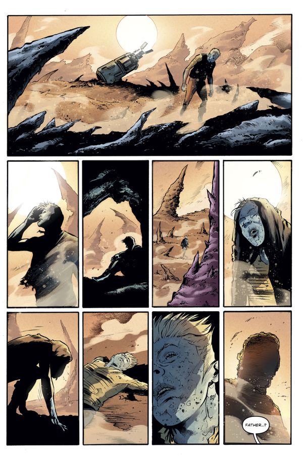 Andrea Mutti’s painterly line work is expressive, particularly in close-ups where facial reactions convey emotional weight. Valerio Alloro’s colors shift appropriately between the lush Kalua flashbacks and the harsh industrial tones of Maku and Nube. Composition uses negative space wisely; action scenes breathe rather than overwhelm. However, some panels feel crowded with dialogue balloons, making visual storytelling take a backseat to exposition delivery. The color palette successfully establishes atmosphere: warmer tones for hope and memories, cooler and more muted shades for desperation and danger.