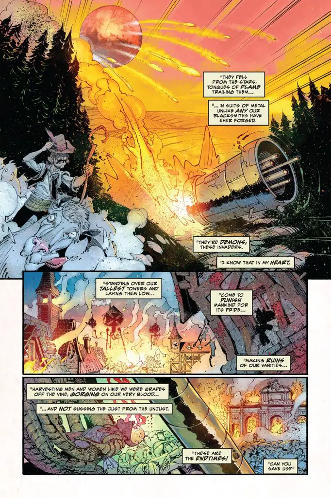 CLASH OF THE CLASSICS: DON QUIXOTE FIGHTS THE WAR OF THE WORLDS is a thoroughly entertaining mashup of ideas, amusing art, and a whimsical tone to put a smile on your face. Mixing two great tastes to find out if they taste great together isn’t a new concept, but this is the first time you’ve ever seen this combination, and it works out surprisingly well.