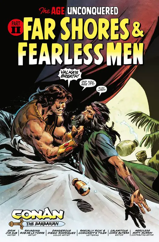 As we’ve said before, we’ll say it again, and we’ll keep saying it until people get the point across: Jim Zub has a clear love for Robert E. Howard and Conan, and it comes across in the way this story feels authentic to the original writings. The voyage has all the ups and downs you would expect from a rough sea voyage where Conan is engaged in a long-term mission. This is not a short story; this is a paced, grand, epic, mythic story in the same vein as Robert E. Howard. The pacing is great, the dialogue is great, and the action is grim, barbaric, and gripping in all the right ways.
