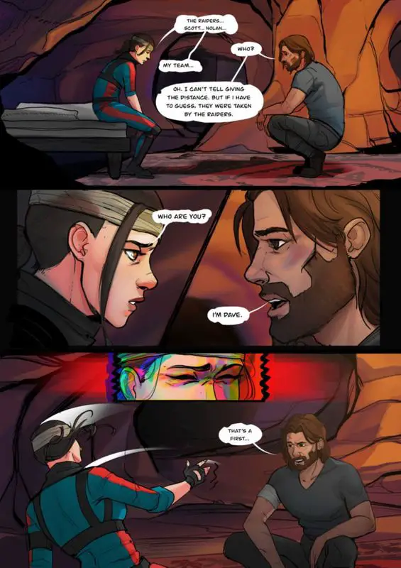 Now, Hannah wakes up under the care of Dave, a “freelancer” who offers to help Hannah for a price but may be operating under ulterior motives. With a lofty offer of money and citizenship, Dave leads Hannah past slave traders, searing heat, and rough terrain to her destination – an abandoned military facility containing a prize that could shift the balance of power in the region.