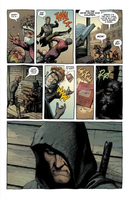 GEIGER #1 effectively establishes its world and characters, immersing readers in a gritty post-apocalyptic setting reminiscent of classic Westerns. The story’s pacing, dialogue, and action sequences are executed with precision, drawing readers into Geiger’s journey and the challenges he faces.
