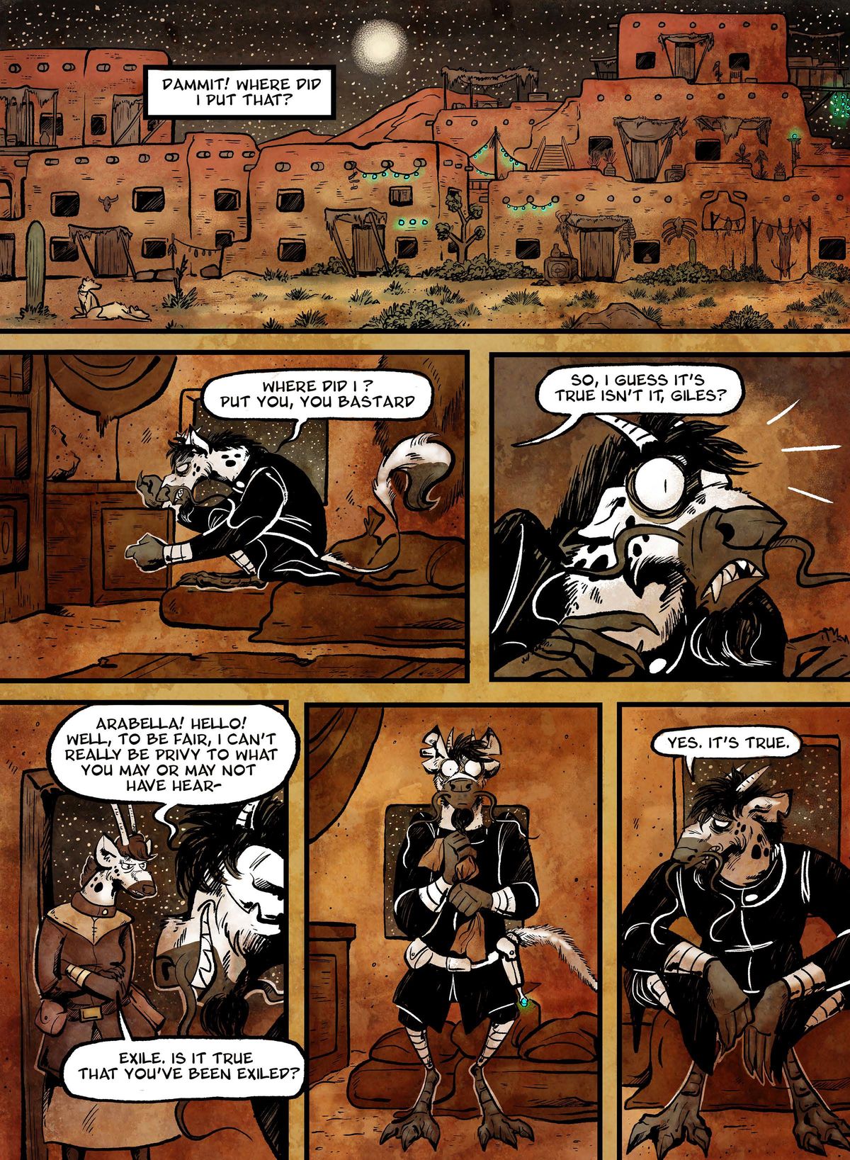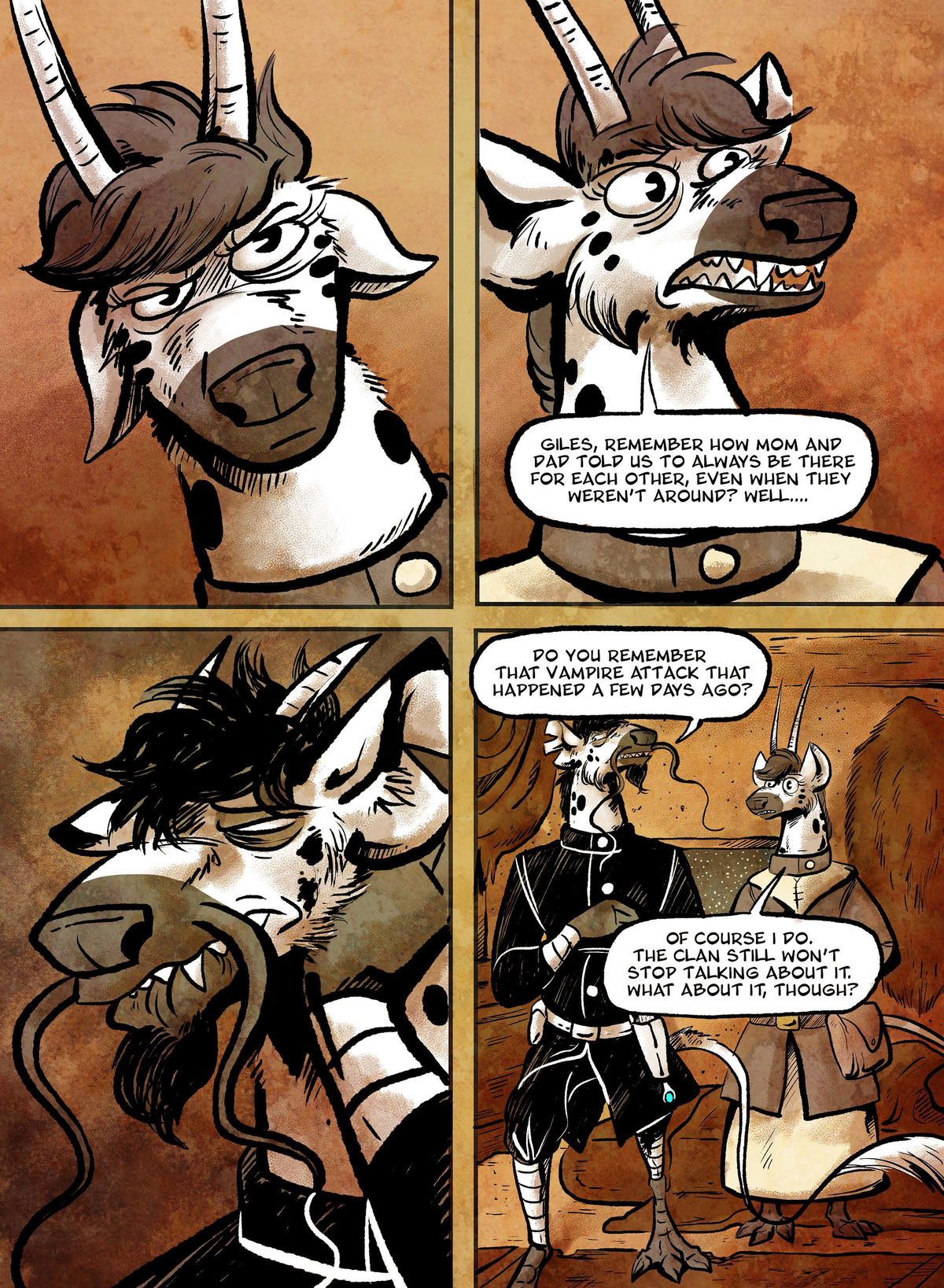 The majority of the issue stays squarely focused on Giles as he bears the burden of a vampire’s bite, tries to blend in (badly) with the Talvit City citizenry disguised as an ugly human, and pleads his case for a job. Sid Quade’s protagonist gets hit with one setback after another but manages to find his way through to the next milestone of his quest.