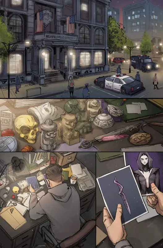 In issue number five, Detective Ken continues his research on occult artifacts, despite pressure to stop investigating Khalida. Meanwhile, Khalida orders Manuel to find out what the detective is up to, as she searches for a particular mystical artifact. Brenna, injured from a fight with Khalida’s exorcists, is confronted by Manuel, hinting at their past relationship. The tension escalates as Kheda learns of potential collaboration between Brenna and Manuel.