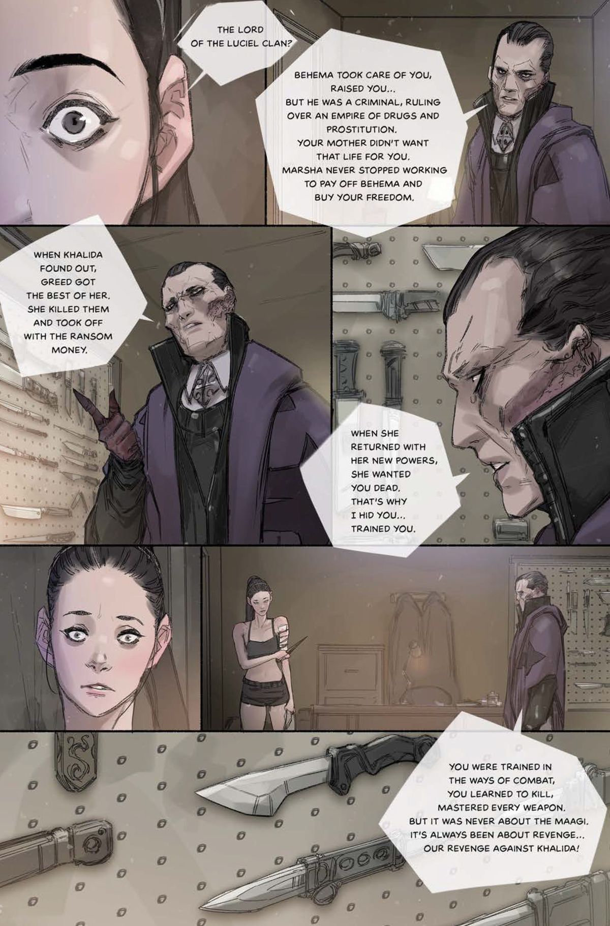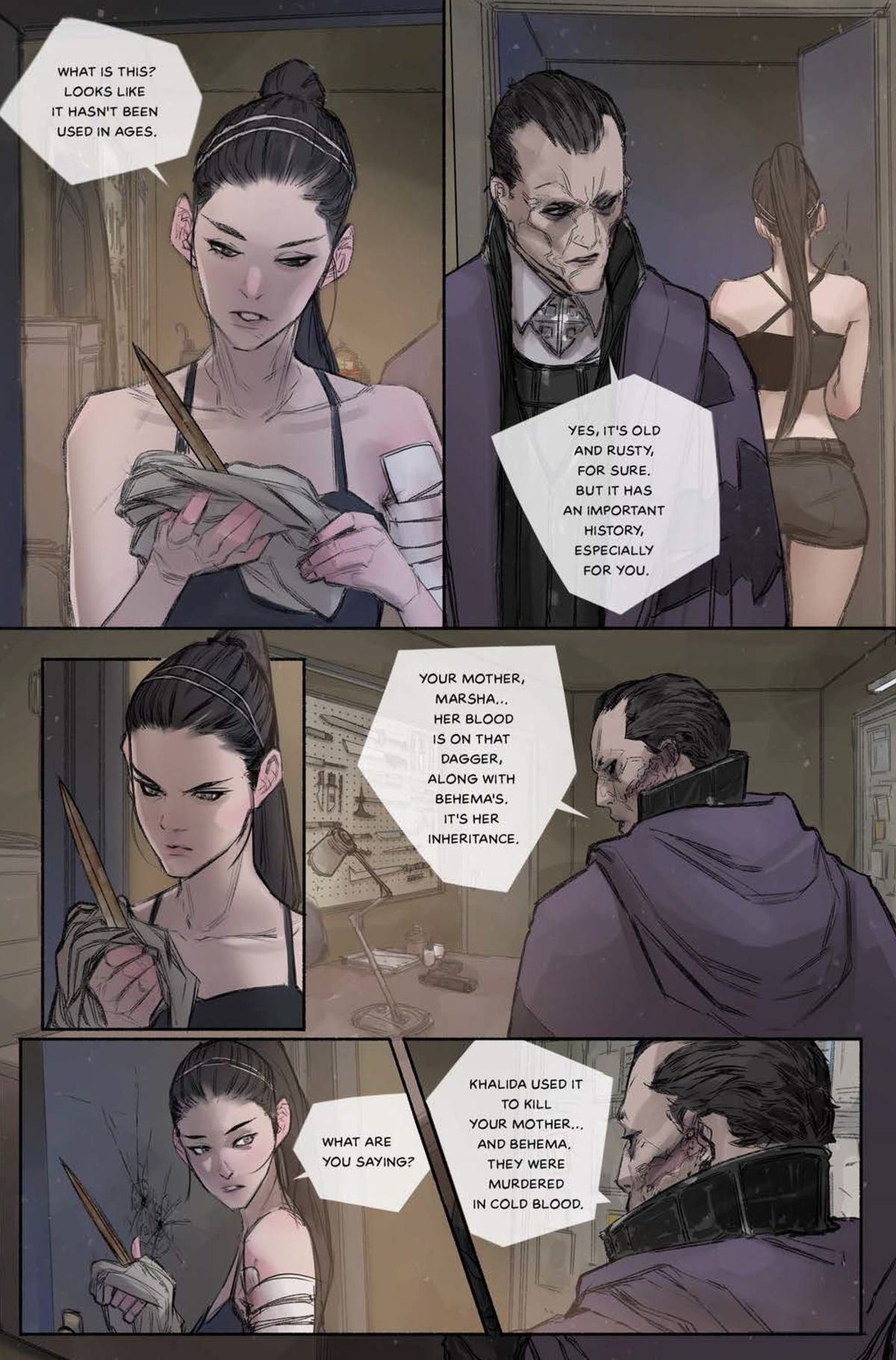 JeeHyung Lee’s atmospheric urban fantasy about a rekindled war between good and evil has so far delivered on every level but one – defining the stakes. The time jump between Khalida finding the blade and her ascension as a holy ruler brims with intrigue, but the story lacks information about what the blade is, how it gave Khalida power, and what she intends to do with that power so many years later. We’re in an Apocalypse scenario, and that’s a good thing to know.