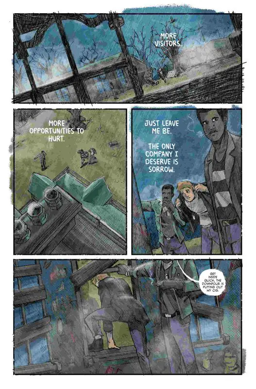The artwork is another highlight. It perfectly captures the mood of the story. When the house is feeling depressed, the visuals are dark and heavy. When Sebastian is lost in his own despair, the panels reflect that. It’s all very well done.