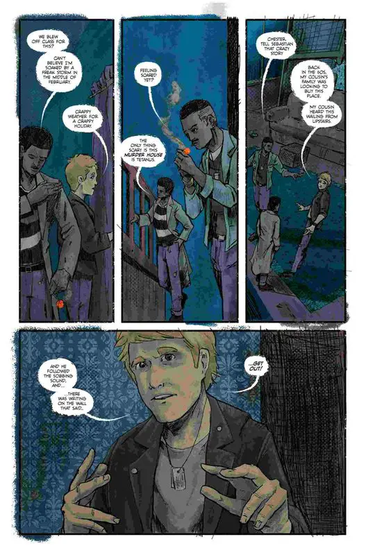Alright, to get ourselves up to speed, let’s rewind a bit. Issue #4 took us on a rollercoaster ride through the house’s emotional turmoil. Remember, this house is sentient, and it’s been working its way through the five stages of grief. In the last issue, we saw it grappling with depression. A trio of teenagers broke in, one of them named Sebastian who was dealing with his own heartbreak, mirroring the house’s emotional state. Things got a little wild, and Sebastian almost took a tumble off the roof. Luckily, the house, in a way, saved him. It seems there’s a strange connection between Sebastian and the house.