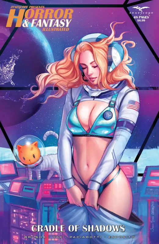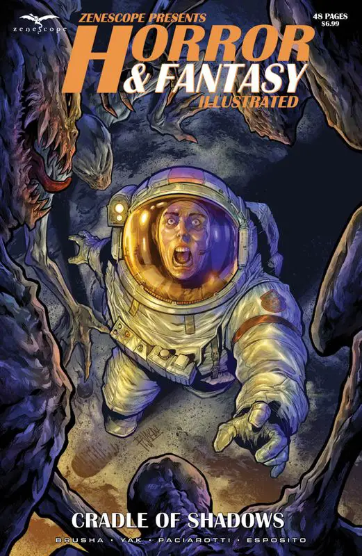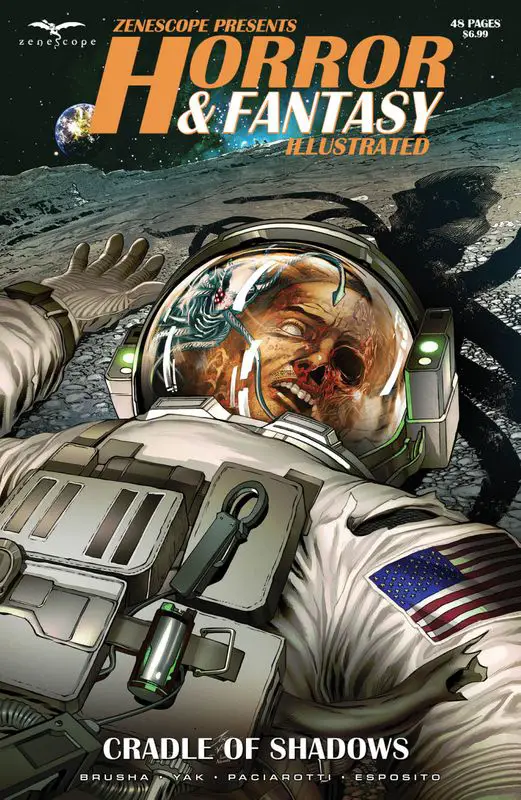 HORROR & FANTASY ILLUSTRATED: CRADLE OF SHADOWS, by Zenescope on 3/20/24, sends an over-ambitious billionaire to the moon to stake a claim on precious resource mining.