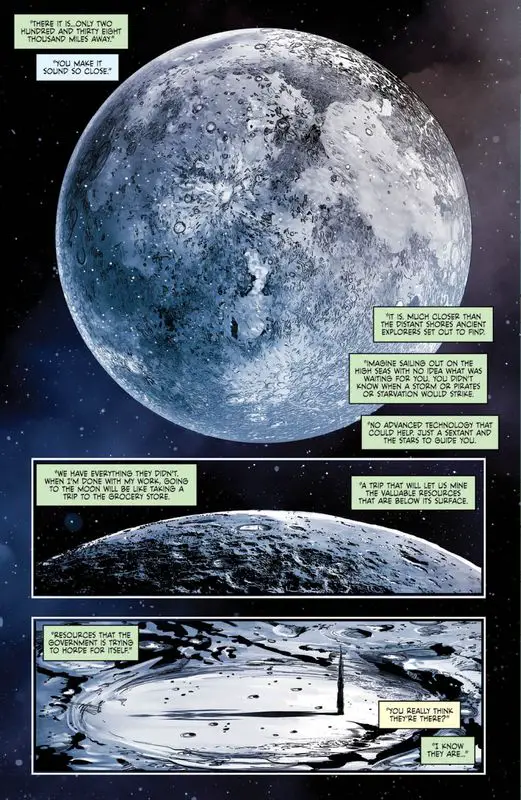 The concept of a secret human-alien alliance on the moon is undeniably interesting and opens the door for further exploration. The comic does a great job of building suspense and delivering a satisfying conclusion. Our only minor nitpick is the lack of a clear explanation for why humans would choose to collaborate with the aliens. The story hints at a power struggle to avoid enslavement, but this aspect could be further developed.