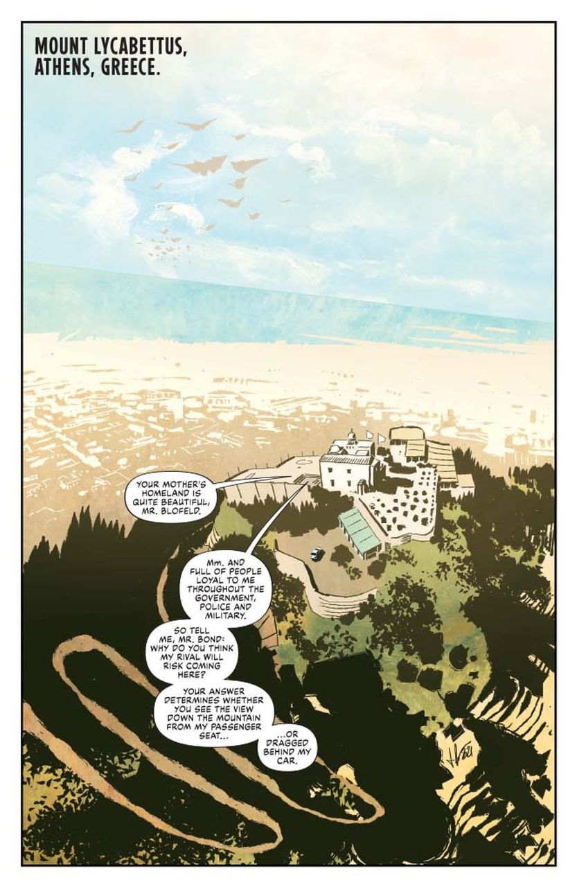 It’s all-out action in Athens, Greece as Bond and Blofeld’s tenuous alliance is tested under fire! Can they survive the mountainside attack by upstart SPECTRE member Titania Jones…and can they survive each other? The double-crosses and triple-crosses hurtle toward a shocking and explosive conclusion in this penultimate issue!