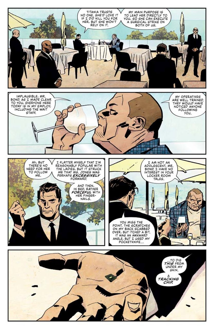 In this exclusive preview of JAMES BOND: AGENT OF SPECTRE #4, available from Dynamite Comics on June 9th, 2021, James Bond plays ally and enemy to both factions in Spectre, but can he escape the fires of civil war before they burn him alive?