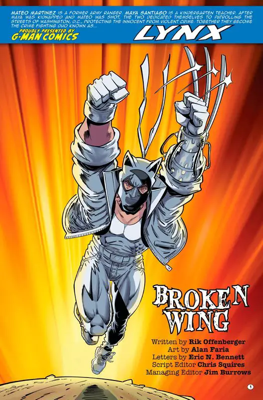Mateo Martinez and Maya Santiago make up the costumed fighting team known as Lynx. Together, they aid the FBI to rid the streets of crime and occasionally join the superhero fighting team known as the G-Men when the challenge is too big for any one hero.