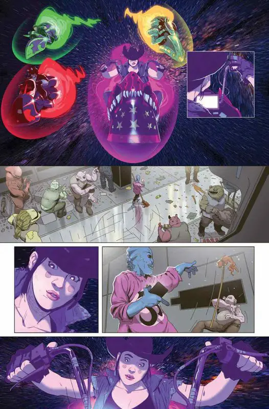 Issue #2 picks up with Meg contacting St. Kraken to inform them of the stolen egg and her missing ship. She embarks on a mission to retrieve both the egg and her ship while evading Intergalaxy, who are in hot pursuit. Meanwhile, the bounty hunter, Bowsand, reveals to Meg that the egg actually houses a monstrous creature capable of planetary destruction. As the story unfolds, alliances shift, sacrifices are made, and Meg finds herself in a desperate race against time to prevent catastrophe.