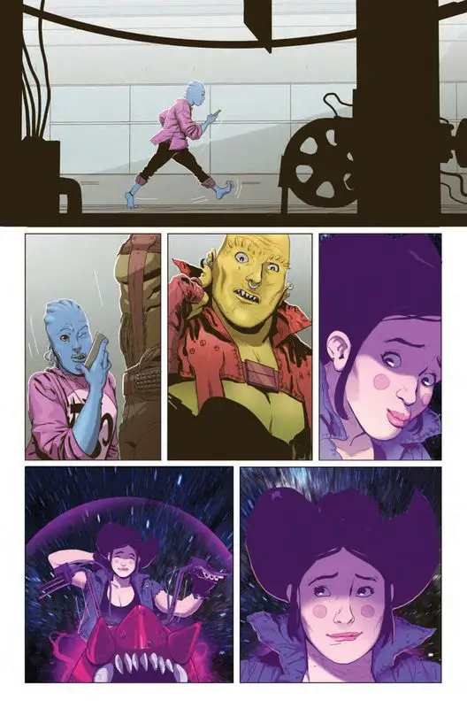 In the first issue, Meg, also known as Machine Girl, and her crew were tasked with retrieving an egg believed to contain an alien child. However, a bounty hunter swooped in and stole the egg, setting off a chaotic chase involving the intergalactic space corporation, Intergalaxy, who also wanted the egg. Meg managed to escape, but not without consequences.