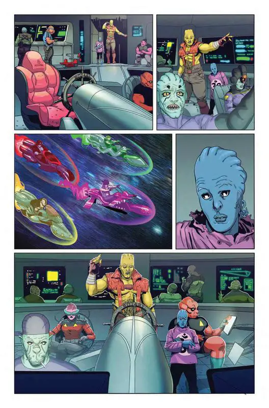Sergio Monjes and the team of colorists deliver detailed and vibrant artwork that enhances the narrative. While some minor anatomical discrepancies exist, overall, the art is visually appealing, with imaginative character designs adding to the comic’s allure.