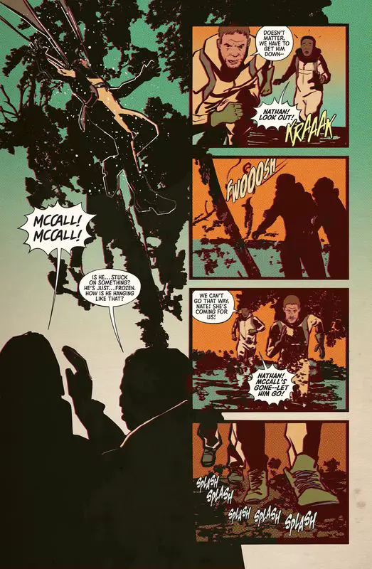 Morning Star #1 takes us deeper into the enigmatic narrative. As the family ventures into the forest for the burial, they’re met with surreal encounters. Charlie, the son, witnesses a spectral vision of his father, hinting at something beyond the ordinary. The issue leaves us questioning reality and longing for answers about Nate’s fate.