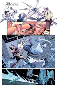 Fred Van Lente crafts the psychological duel at the issue’s heart with precision and rhythm that feels like watching two fighters trade blows in slow motion. Every line of dialogue carries weight because each one is either truth or deception, and the reader never quite knows which interpretation is correct. The pacing doesn’t rush; instead, it lingers on the Abbot’s insults, making each word land harder than quick action ever could.