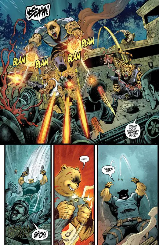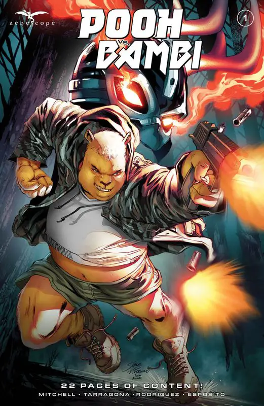 “Poo vs. Bambi #1” plunges readers into a high-octane operation within the serene confines of the Hundred Acre Wood. As a black ops team storms a compound, the true nature of Pooh, Bambi, and their woodland companions is unveiled—they’re not mere forest dwellers but rather experiments turned into lethal operatives by the government.