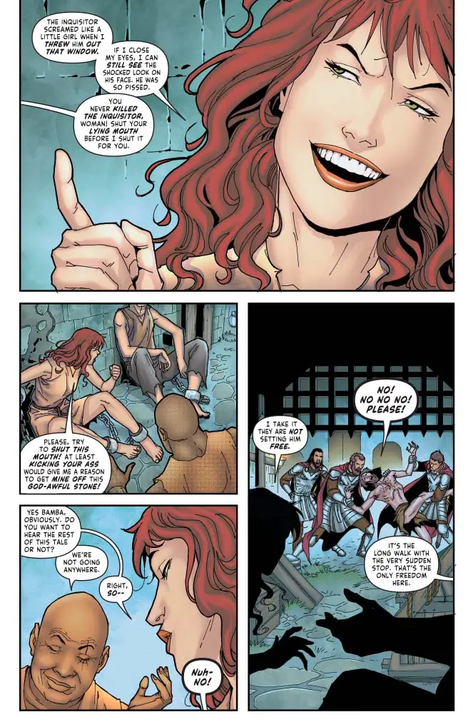 Red Sonja caretaker Luke Lieberman returns to the fiery-haired heroine for another chapter in her early adventures. He’s joined by fan-favorite Sonja artist Walter Geovani (Death-Defying ‘Devil, Clean Room) whose prolific work on the character goes back over a decade, most celebrated being his run with Gail Simone. Issue #2 finds Sonja awaiting her fate amidst the drama and intrigue of warring nations. Will she escape the hangman’s noose?