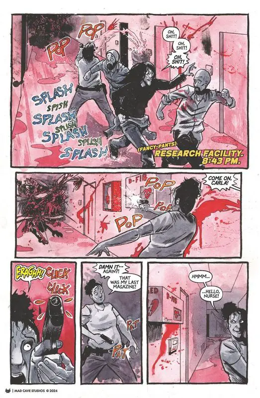 SKEETERS #4, by Mad Cave Studios on 3/13/24, concludes the B-Movie gorefest when Agent Smith stumbles upon an antidote to the alien infection that makes Luis very happy.