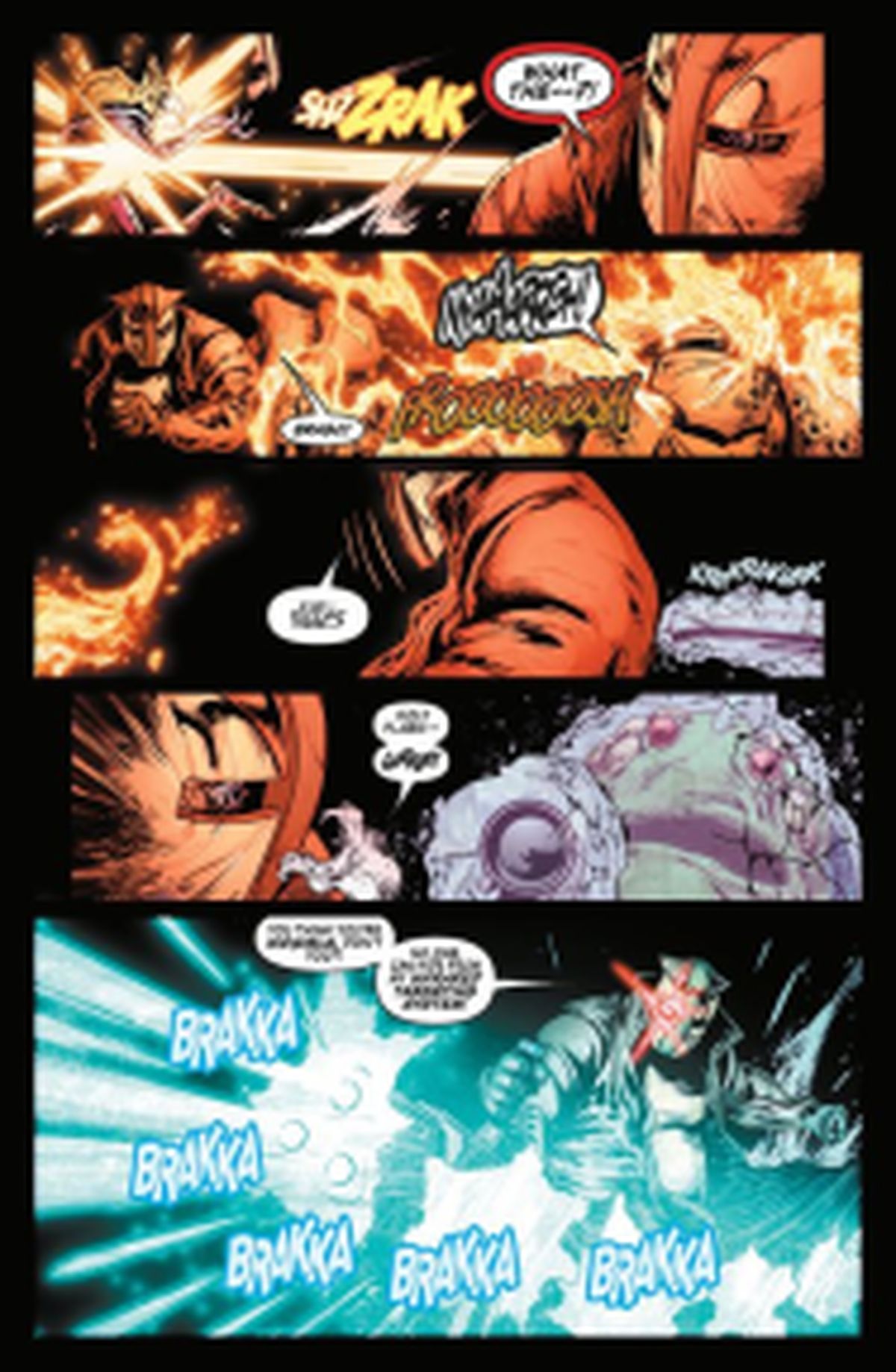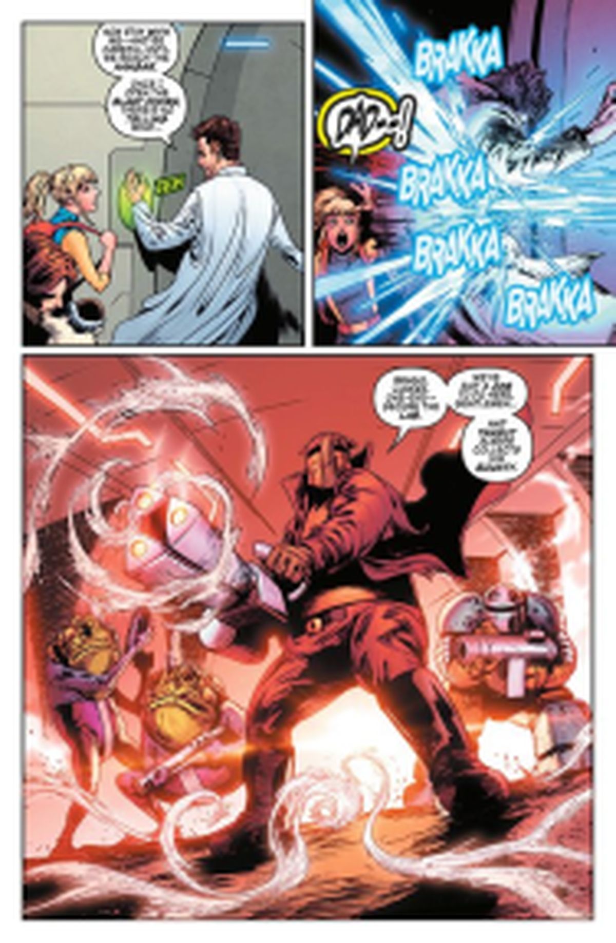 When the mercenaries zero in on Jan and Jace’s hiding spot, a blast of energy knocks one of the hunter’s down. Another is frozen in place, and a third is punched out. A mysterious figure wearing a cape and cowl emerges from the shadows.