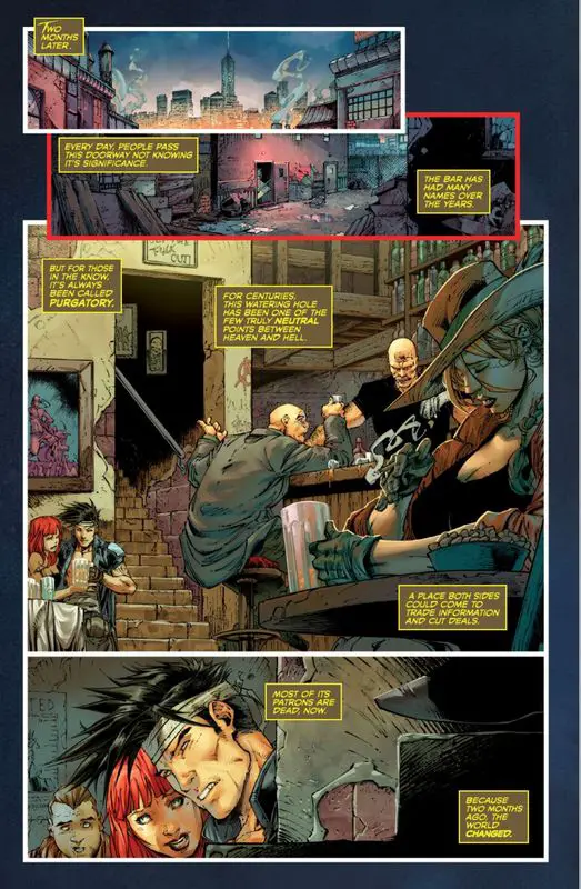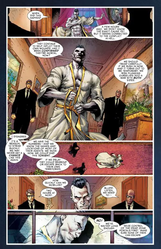 In Spawn #351, Spawn, still mortal and powerless, is searching for a cure for vampirism. He opposes Bluddd, the king of the vampires, who took advantage of the chaos after the war. Bludd’s vampire army now controls the portals to heaven and hell. Spawn aims to find a cure to level the playing field and confronts vampires.