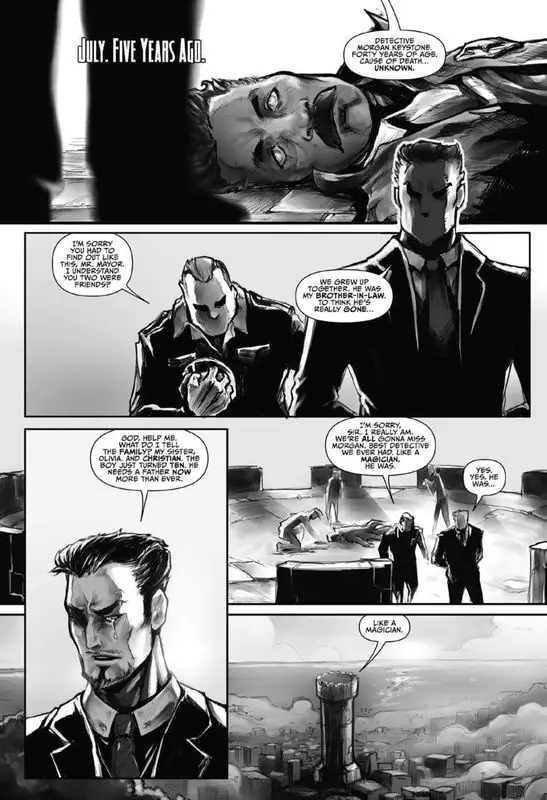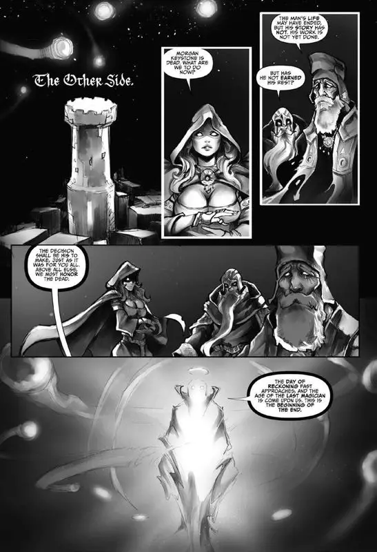 This volume regales readers with the story of a young man named Chris Keystone, descended to become the last magic wielder. Chris’s father, a powerful magician, is killed in the line of duty, leaving Chris to figure out his path in life. Five years later, Chris feels the pull of destiny, eventually being drawn to a mausoleum in a cemetery where he is bestowed with magical powers.