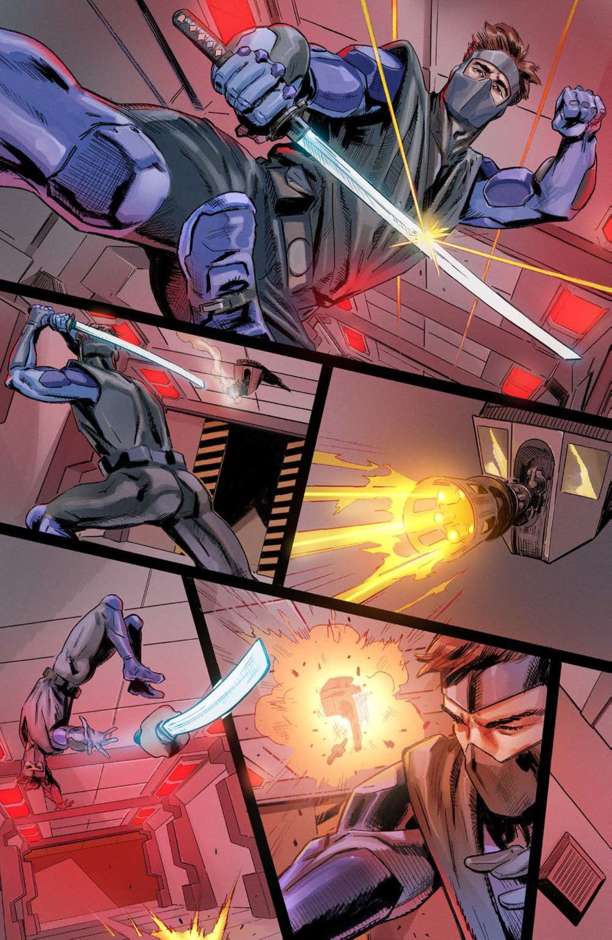 Of course, the Valiant heroes aren’t dead, and Crenshaw knows it. We first catch up with Ninjak infiltrating a secret research base with his sidekick, Myna. The duo is looking for Dr. Silk, but all they find is a dead clone, a robot butler, and little else. Crenshaw seizes the opportunity to enlist Ninjak’s help when she offers to fix up the base as a new HQ for Ninjak.