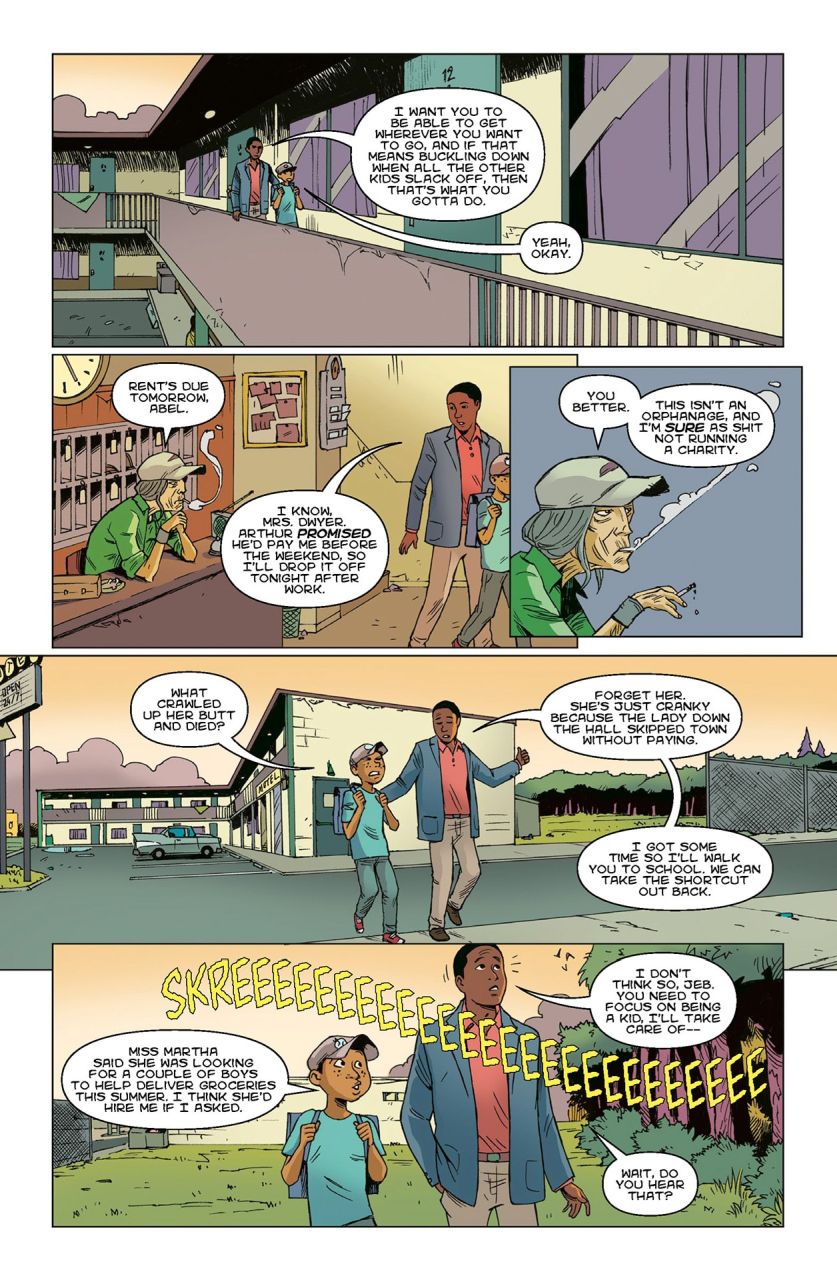 In this exclusive preview of THEY FELL FROM THE SKY #3, available from Mad Cave Studios on April 14th, 2021, Old Jeb tells a tale that sheds new light on Thomas’s relationship with his alien friend.