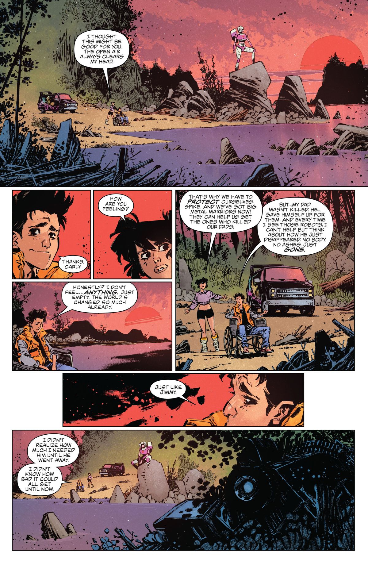 Thematically, who knew a sci-fi comic about transforming robots could get this deep into exploring concepts of sudden grief, family, and sadness? Johnson gives you a range of emotional beats to make even small moments count, which gives the story about robots a distinctly human feel.