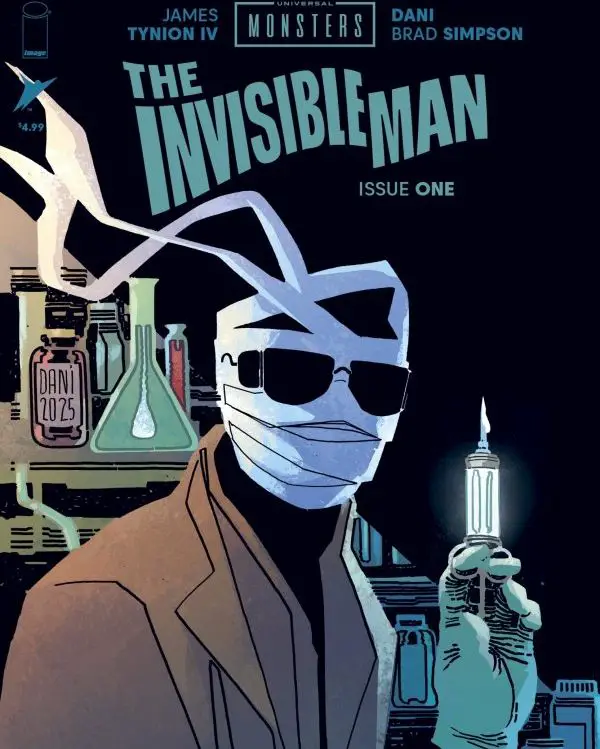 Universal Monsters: The Invisible Man #1, by Image Comics on 8/27/25, counts Jack Griffin’s descent into madness when he stumbles upon a chemical concoction that renders life invisible and very dangerous.