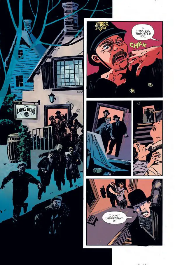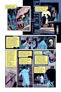 The writing establishes a sharp contrast between the Invisible Man’s present anger and his past scientific pursuits. The dialogue in the opening pages delivers a direct, menacing tone. The narration effectively conveys the protagonist’s growing obsession and disdain for his colleagues.