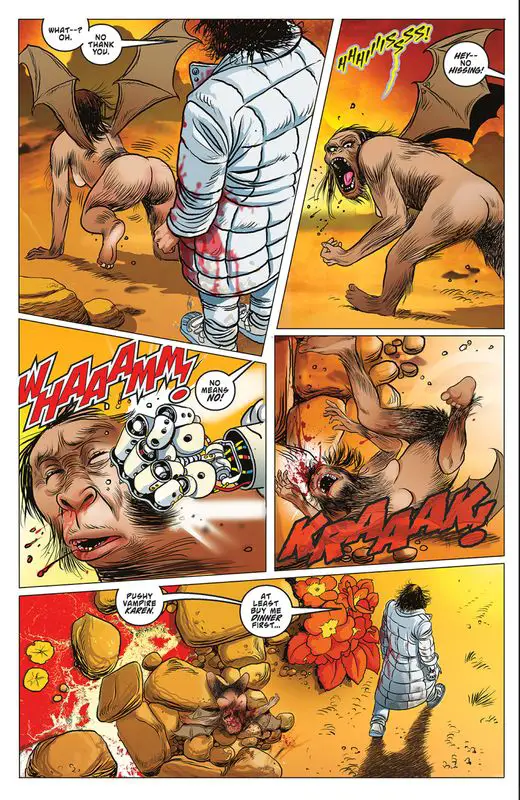 The art by Ergün Gündüz shows signs of improvement, with better integration of characters and backgrounds. However, there are still instances of stiff and awkward poses, detracting from the overall visual appeal. While the use of action lines adds some dynamism to the scenes, the characters’ expressions often feel lacking in detail and emotion.
