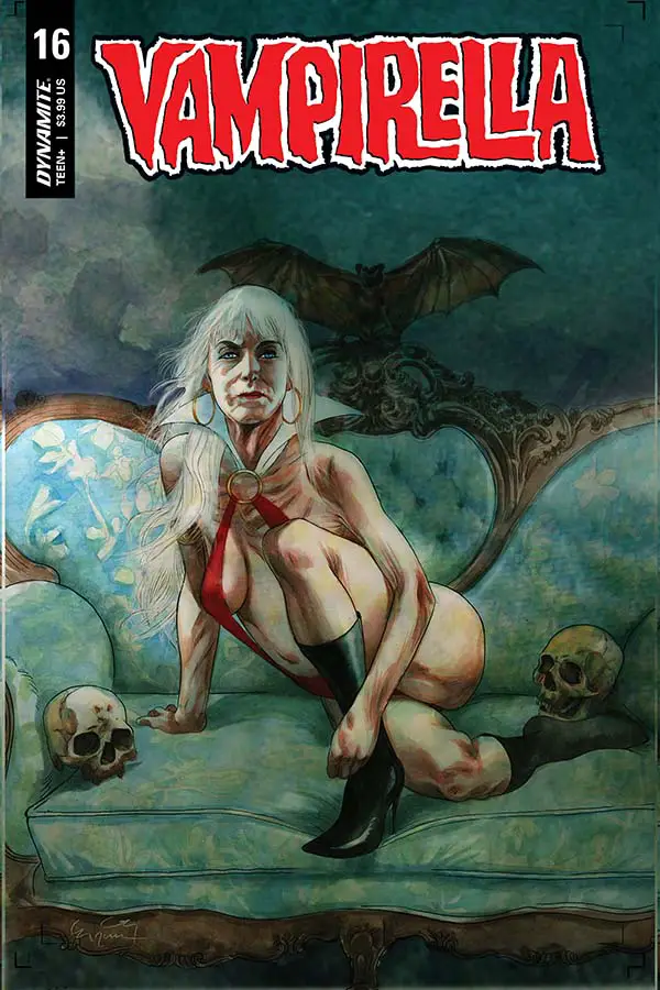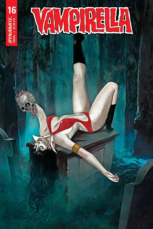 You can check out the exclusive Dynamite preview images for the issue below, and don’t forget to read the advance review of VAMPIRELLA (Vol. 5) #16 right here on Comical Opinions.