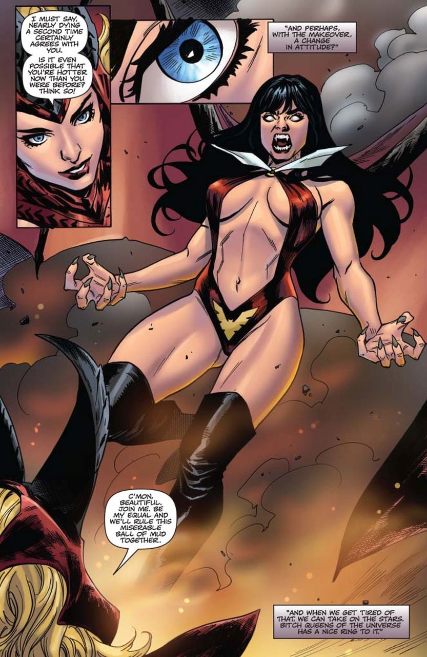 Vampirella and Nyx finally meet in the Hoe-Down Throw-down for control of the Earth. The winner will either plunge the world into eternal Chaos or finally restore Order.